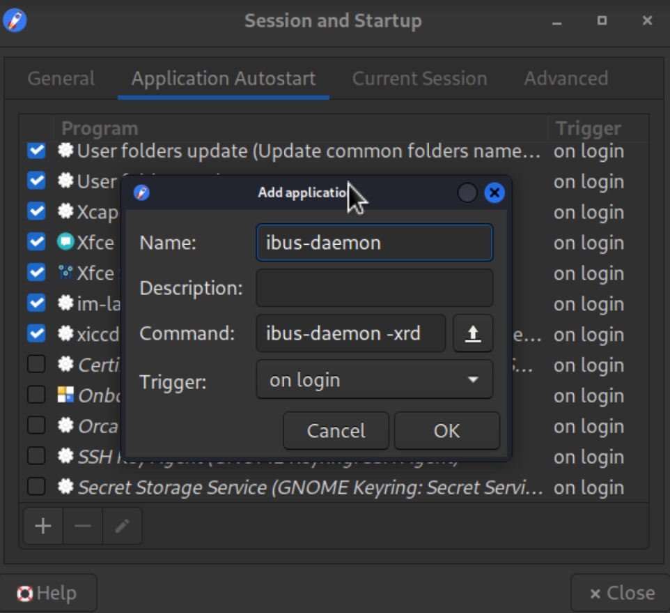 5.之后每次开机似乎都需要重新运行ibus-daemon程序,所以我们来将其设置开机运行: