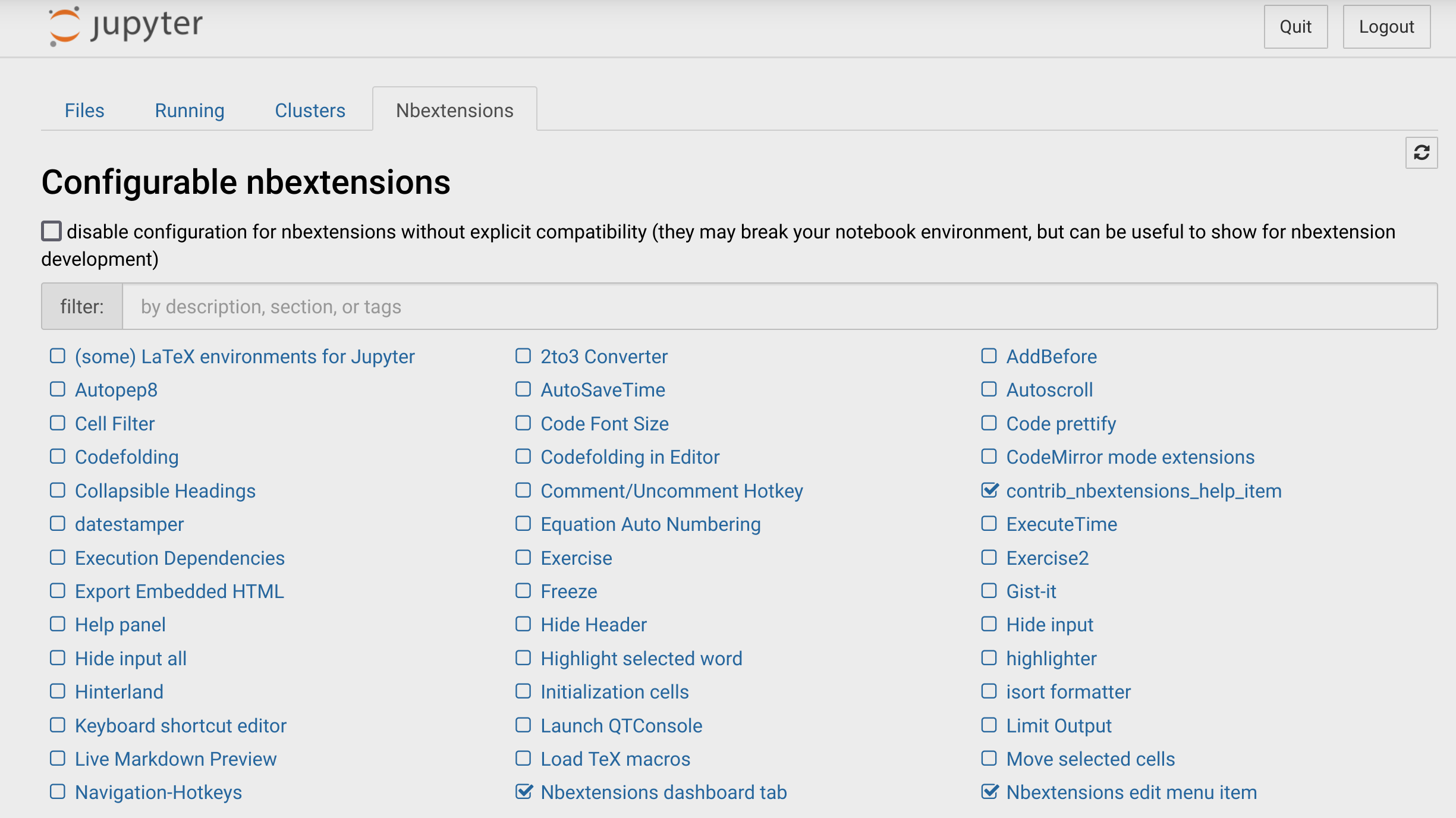 在安装完jupyter后,想着给我的notebook添点好用的插件,在网上找到了nbextensions这玩意,之前在电脑的ubuntu上装过,当时总体还算顺利。