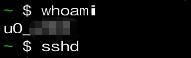 如图,可能Termux赋予的用户名都是u0开头的,假设这里是u0_z666,接着输入passwd u0_z666来更改用户密码,也是后面sshfs要用的。此时打开sshd服务:用命令